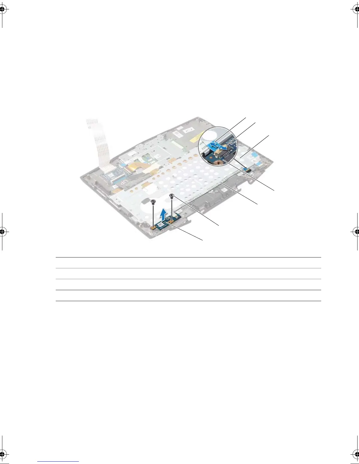 3 Remove the screws that secure the power-button board to the palm-rest assembly.