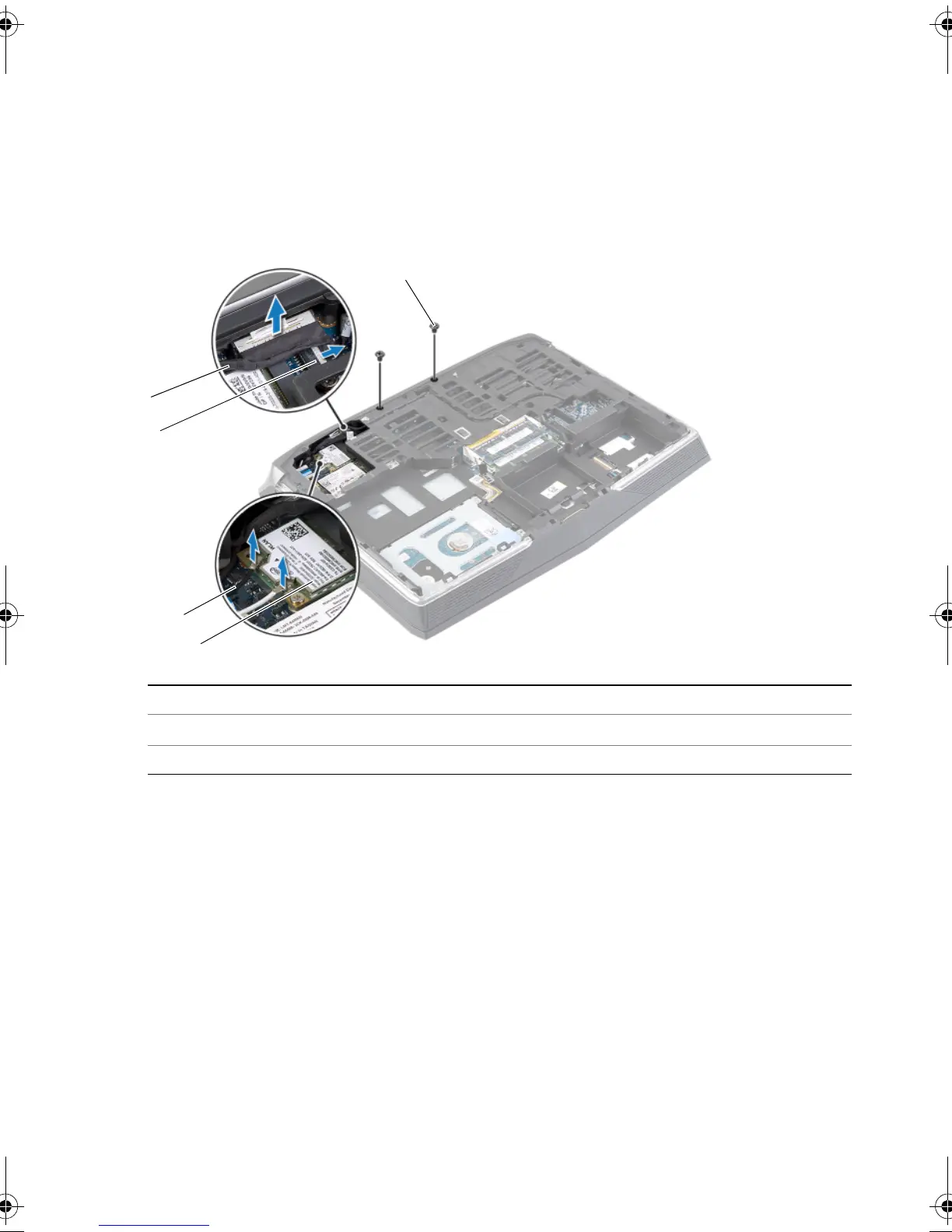 3 Disconnect the antenna cables from the wireless mini-card.