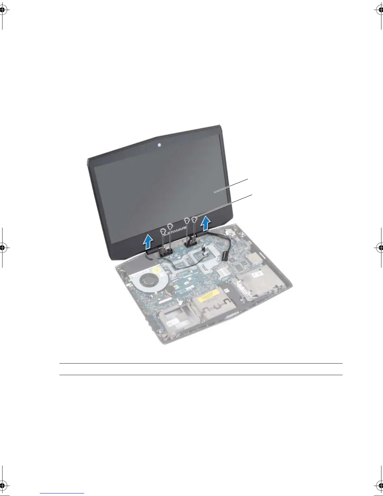 6 Remove the display, camera, and antenna cables from the slots on the computer