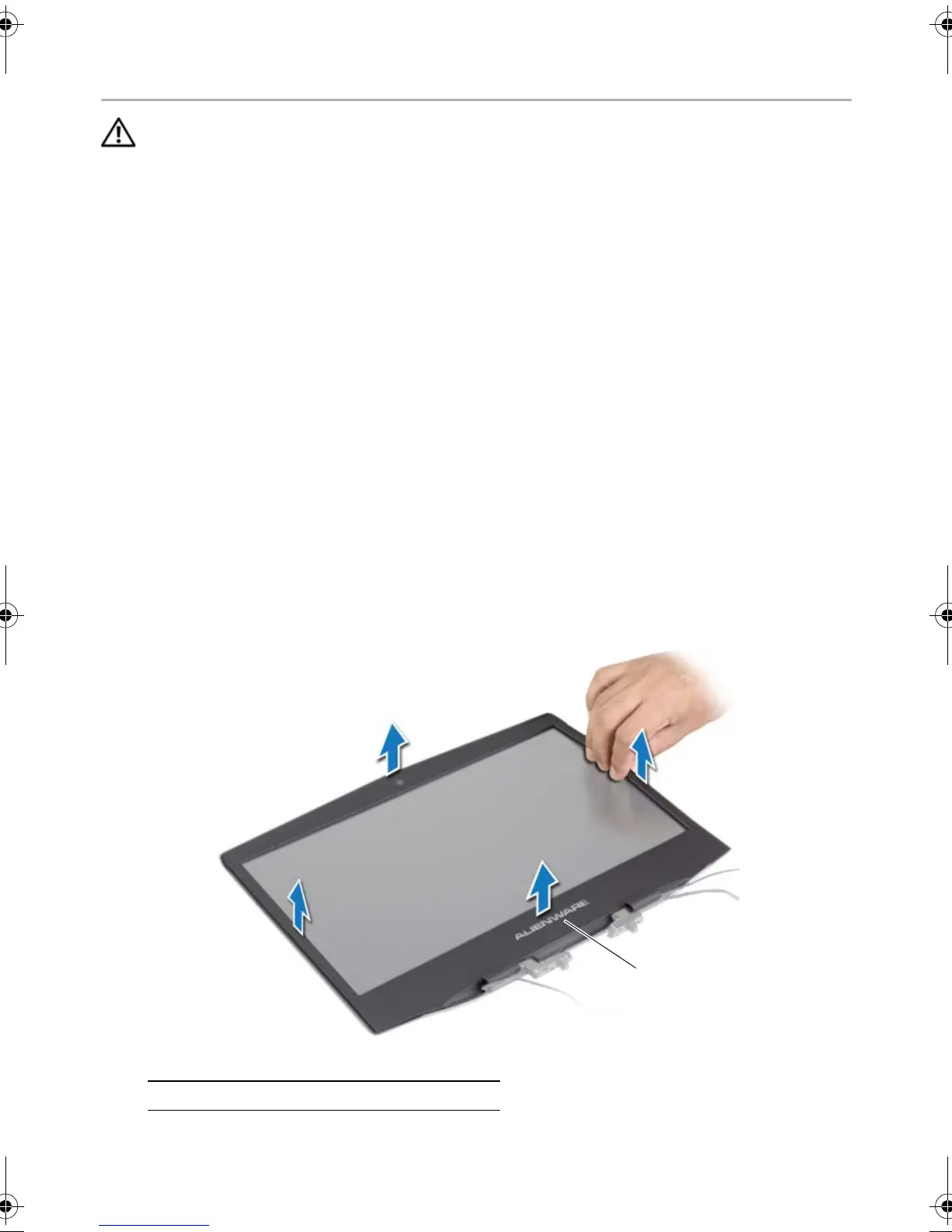1 Using your fingertips, carefully pry up the inside edge of the display bezel.