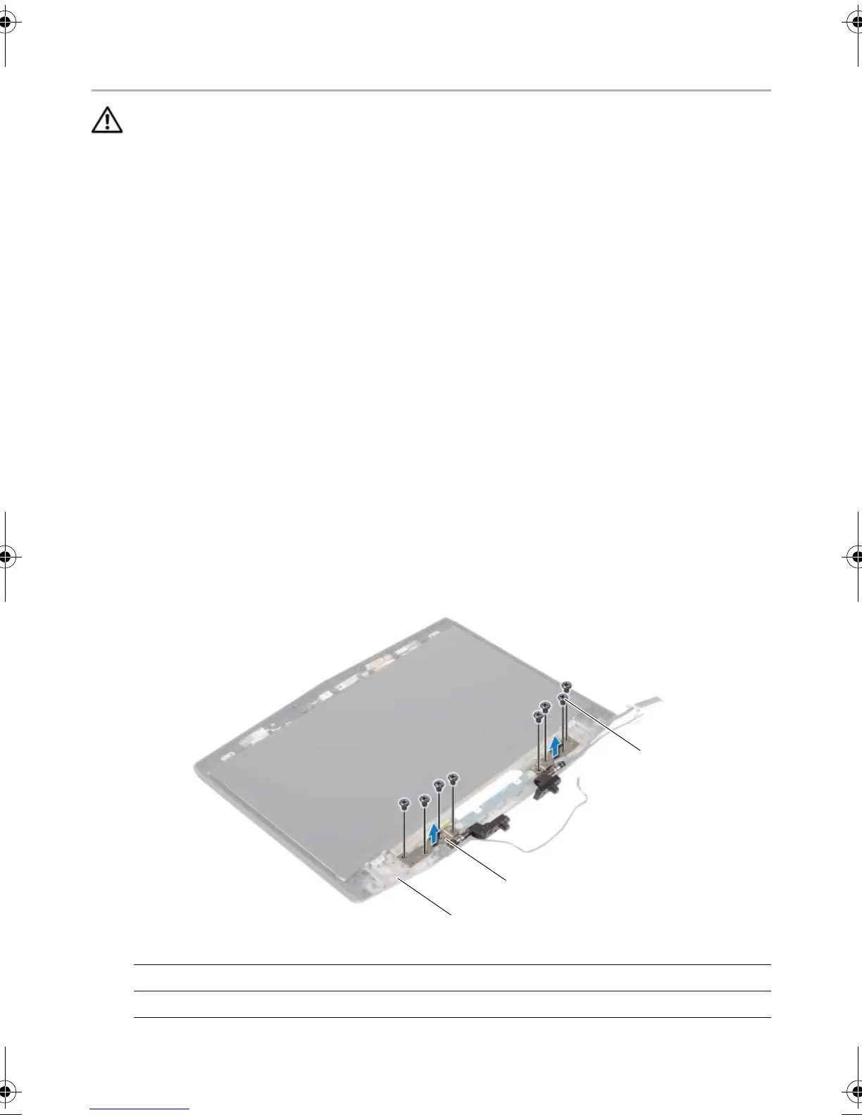 1 Remove the screws that secure the display hinges to the display back-cover.