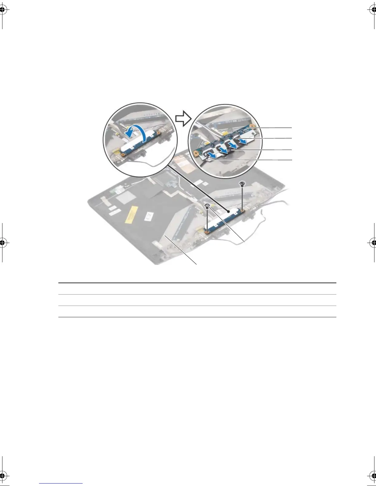 2 Carefully rotate the logo board over and disconnect the display-light board cables,