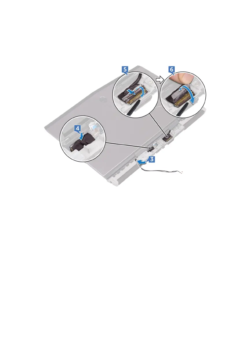 6 Adhere the tape that secures the display cable to the system board.