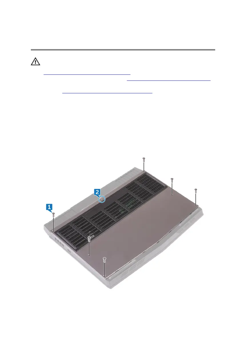 1 Remove the six screws (M2.5x13) that secure the base cover to the computer