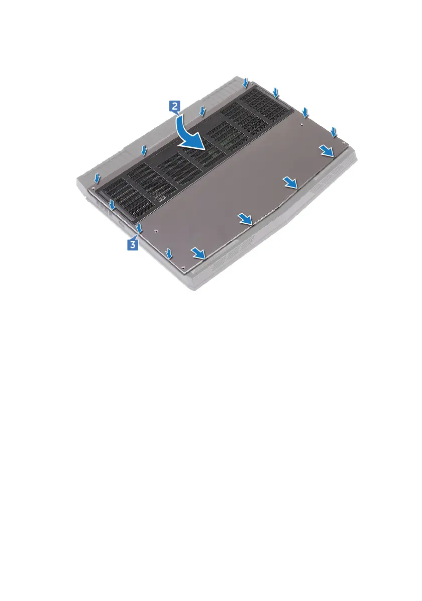 4 Tighten the captive screw that secures the base cover to the computer base.