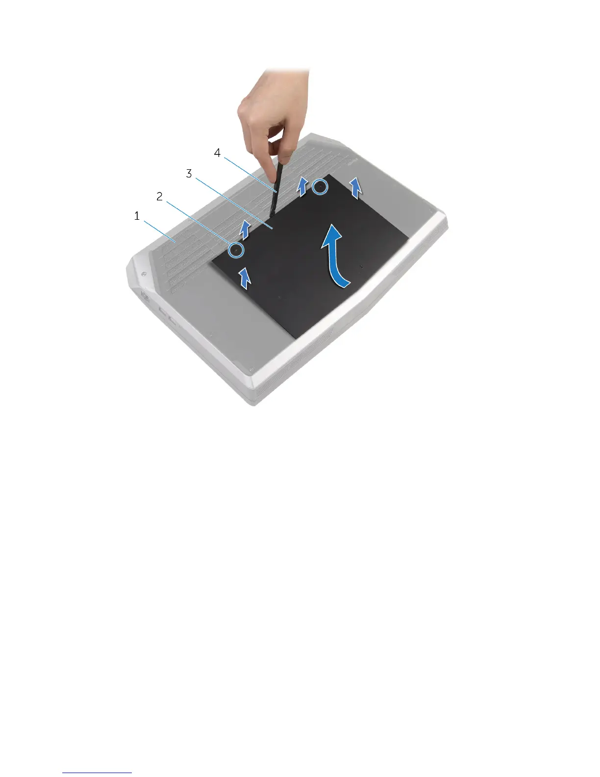 4 Slide and remove the base panel from the computer base.