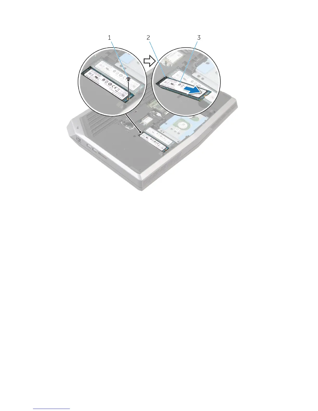2 Slide and remove the solid-state drive from the solid-state drive slot.