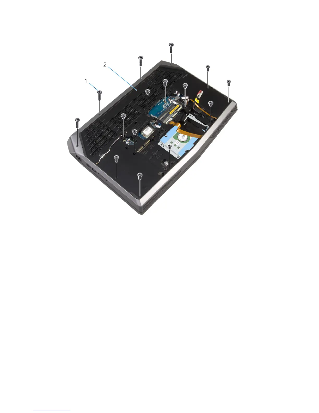 3 Remove the screws that secure the palm-rest assembly to the computer