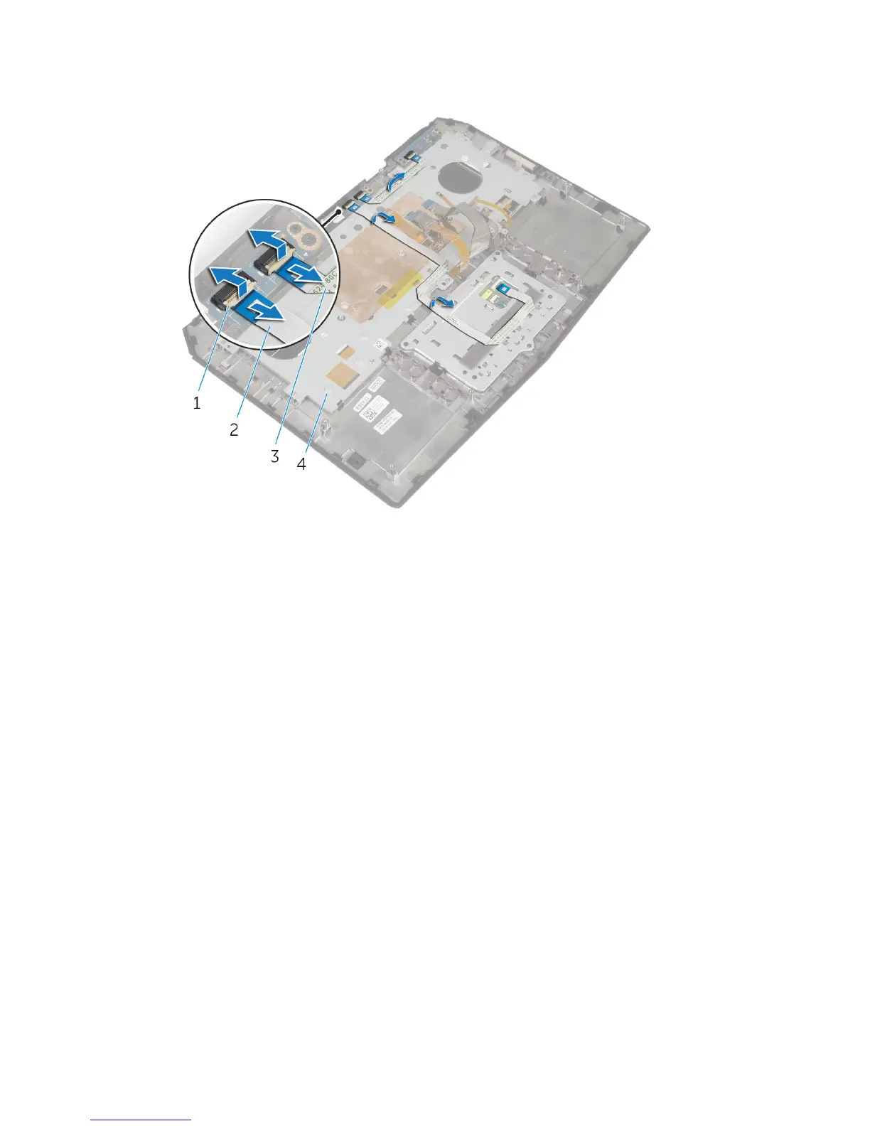 2 Note the touch-pad cable and status-light cable routings and peel off the