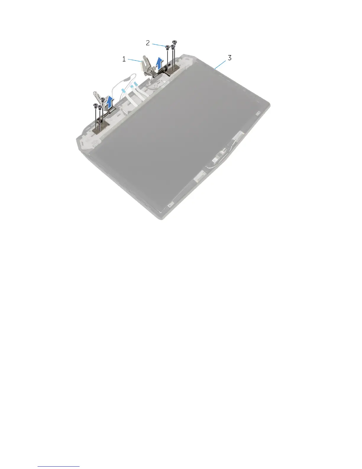 2 Lift the display hinges off the display assembly.