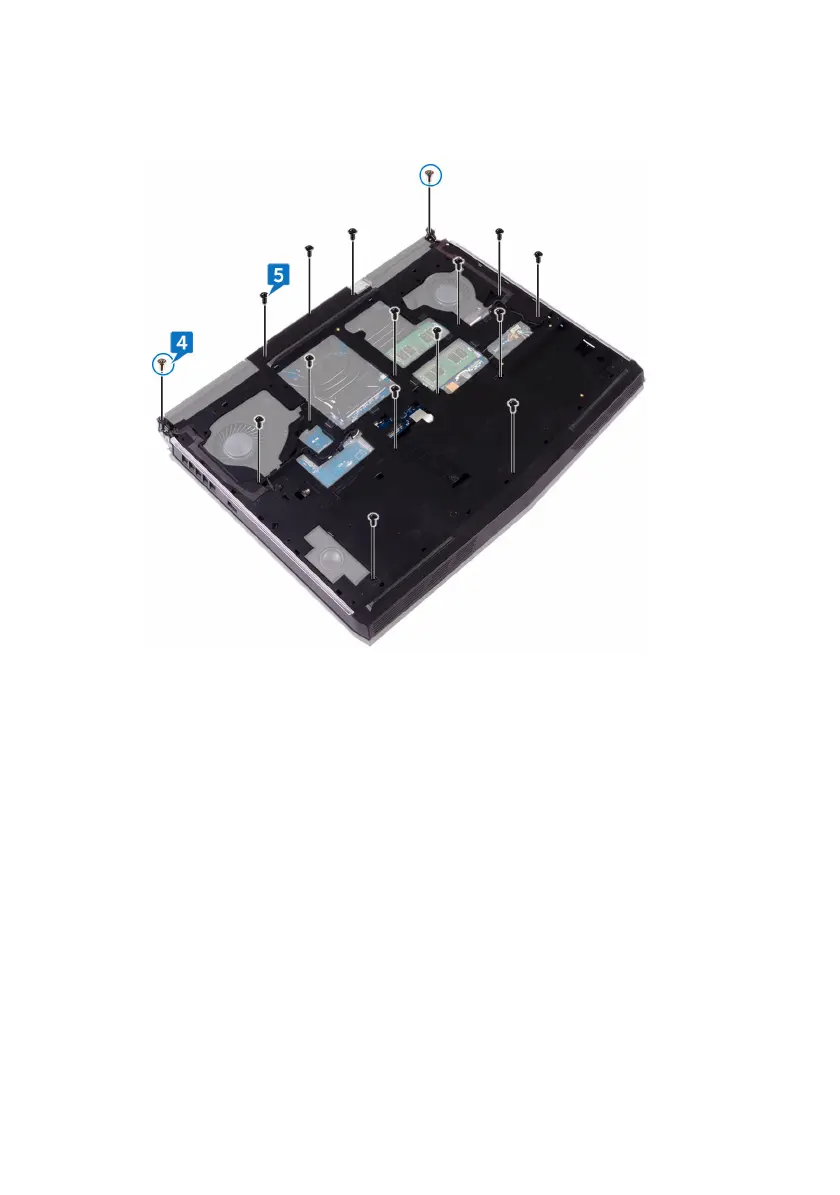 5 Remove the 14 screws (M2.5x8) that secure the computer base to the palm-