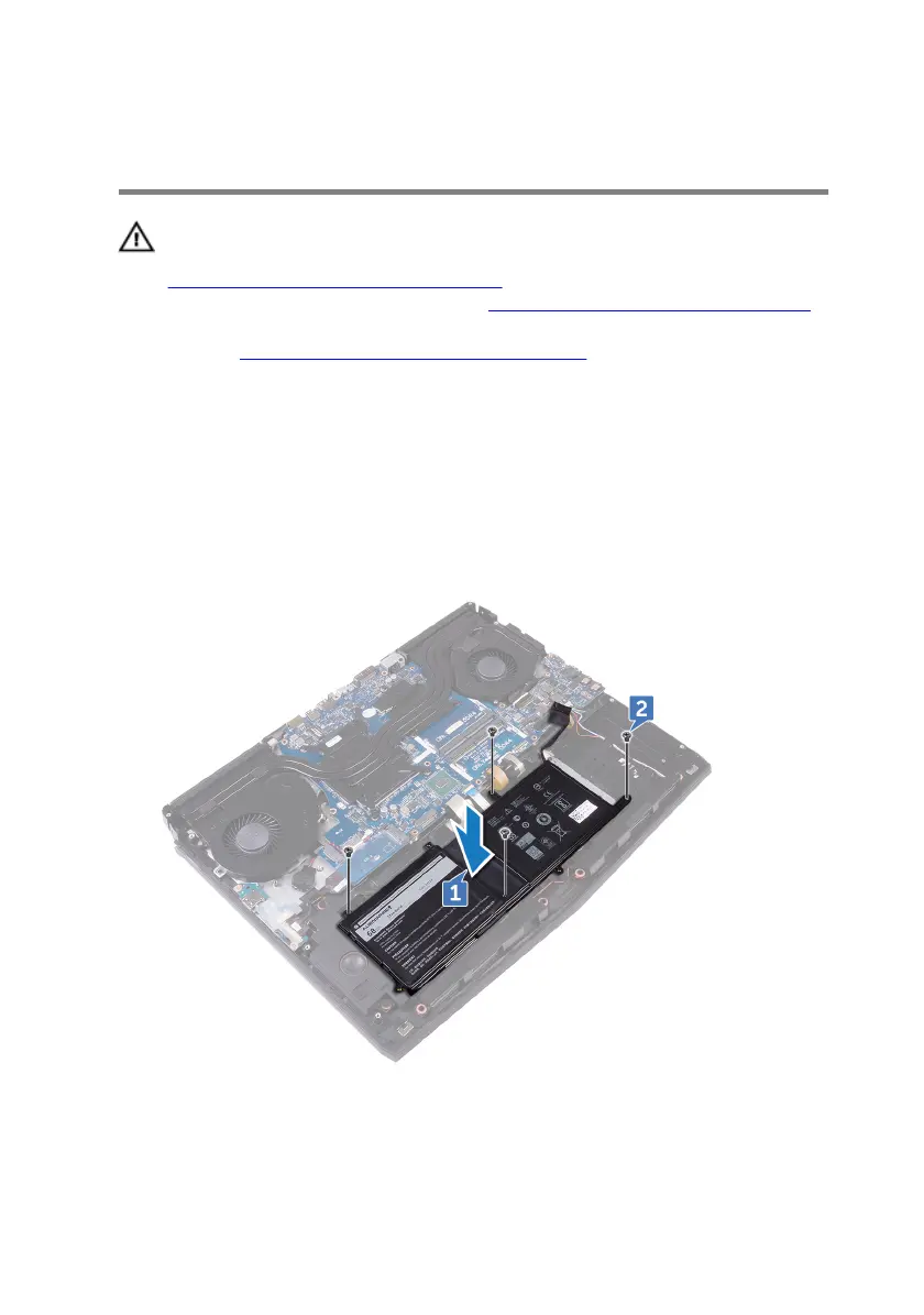 1 Place the battery on the palm-rest assembly, and align the screw holes on the