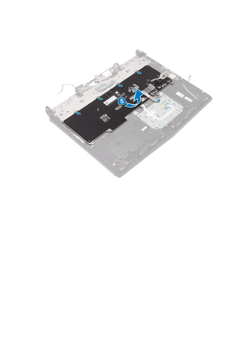 5 Lift the keyboard at an angle, and remove it from the tabs on the palm-rest