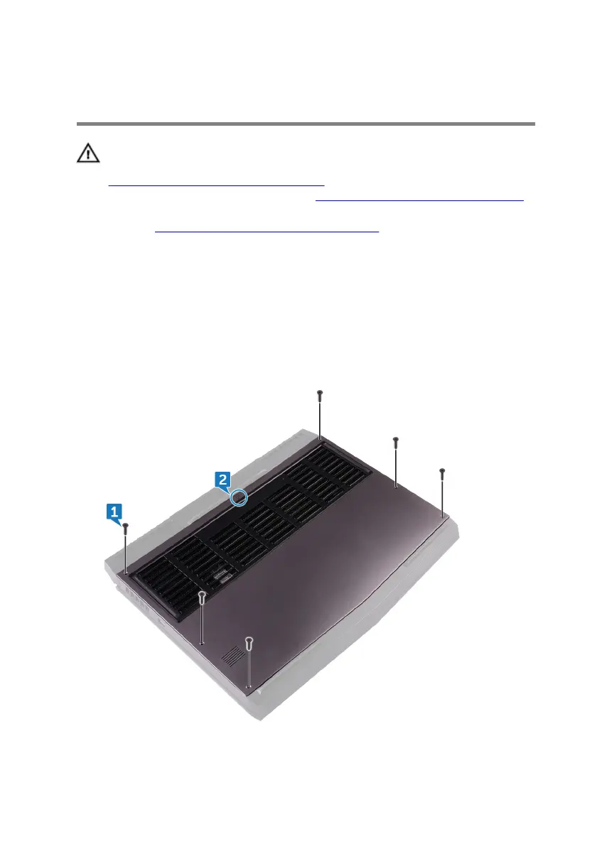 1 Remove the six screws (M2.5x13) that secure the base cover to the computer