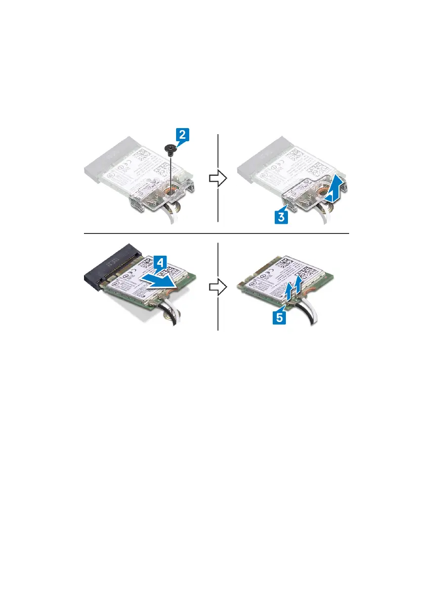 4 Lift and slide the wireless card out of the wireless-card slot.