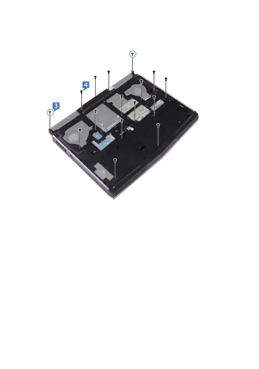 4 Remove the 14 screws (M2.5x8) that secure the computer base to the palm-
