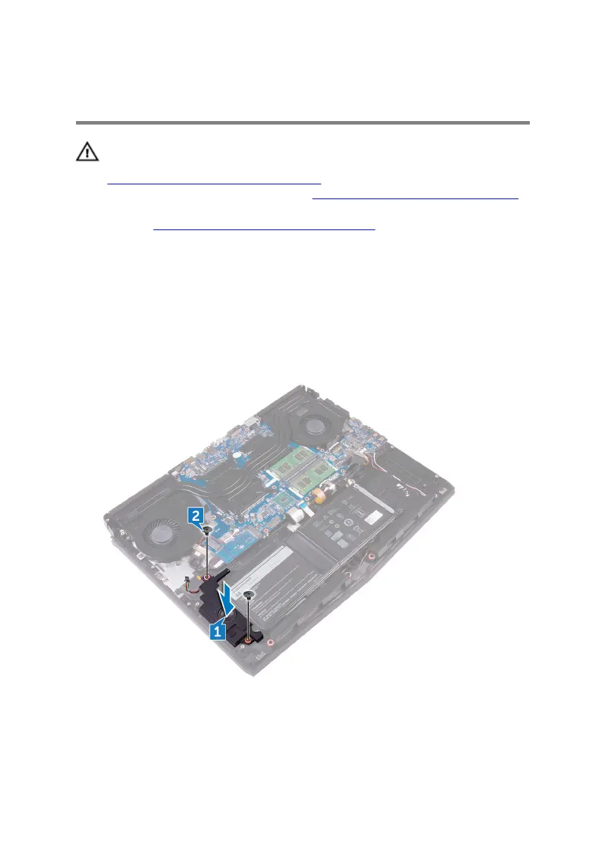 2 Replace the two screws (M2x2) that secure the subwoofer to the palm-rest