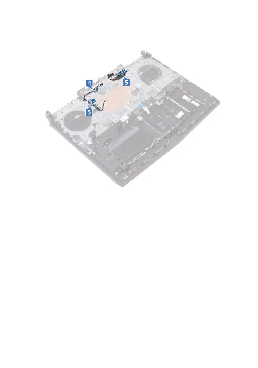 6 Push the antenna cables, logo board cable, tobii eye-tracker cable, and the