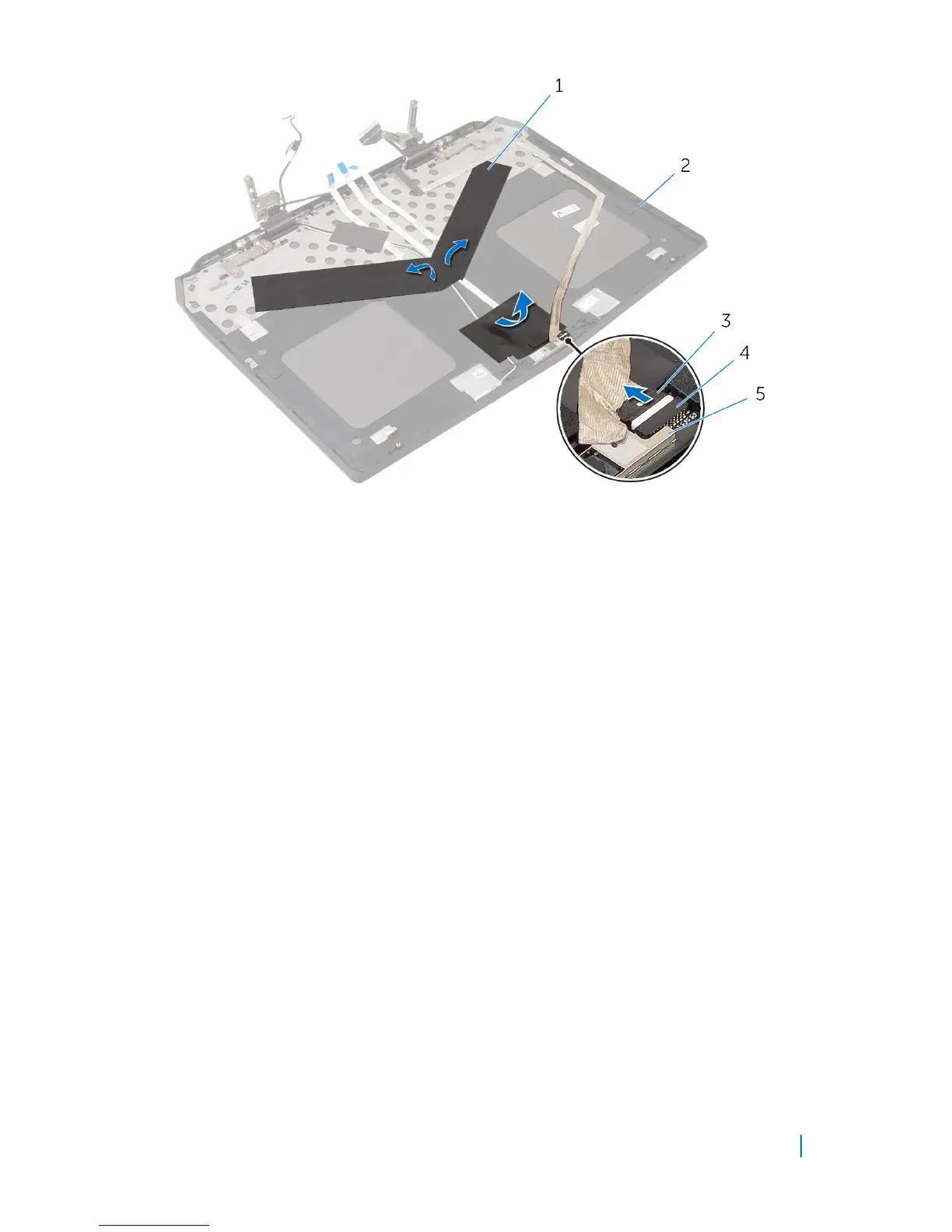 4 Lift the display-board cable and Alienware AlienHead LED board off the display
