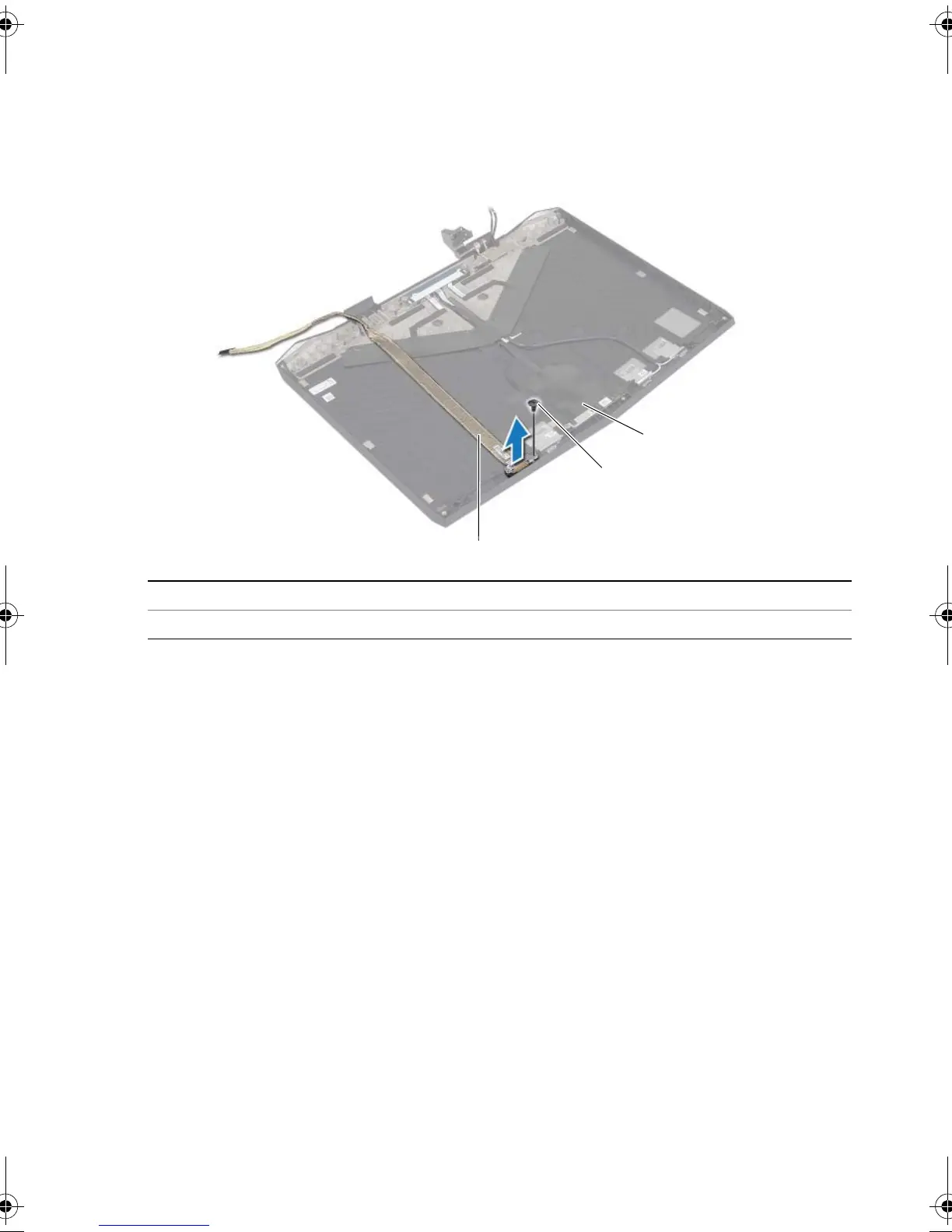 1 Remove the screw that secures the display mini-card cable to the display back-cover.