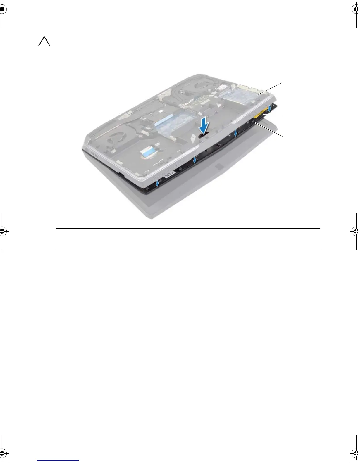 CAUTION: Push the palm rest down carefully to avoid scratching