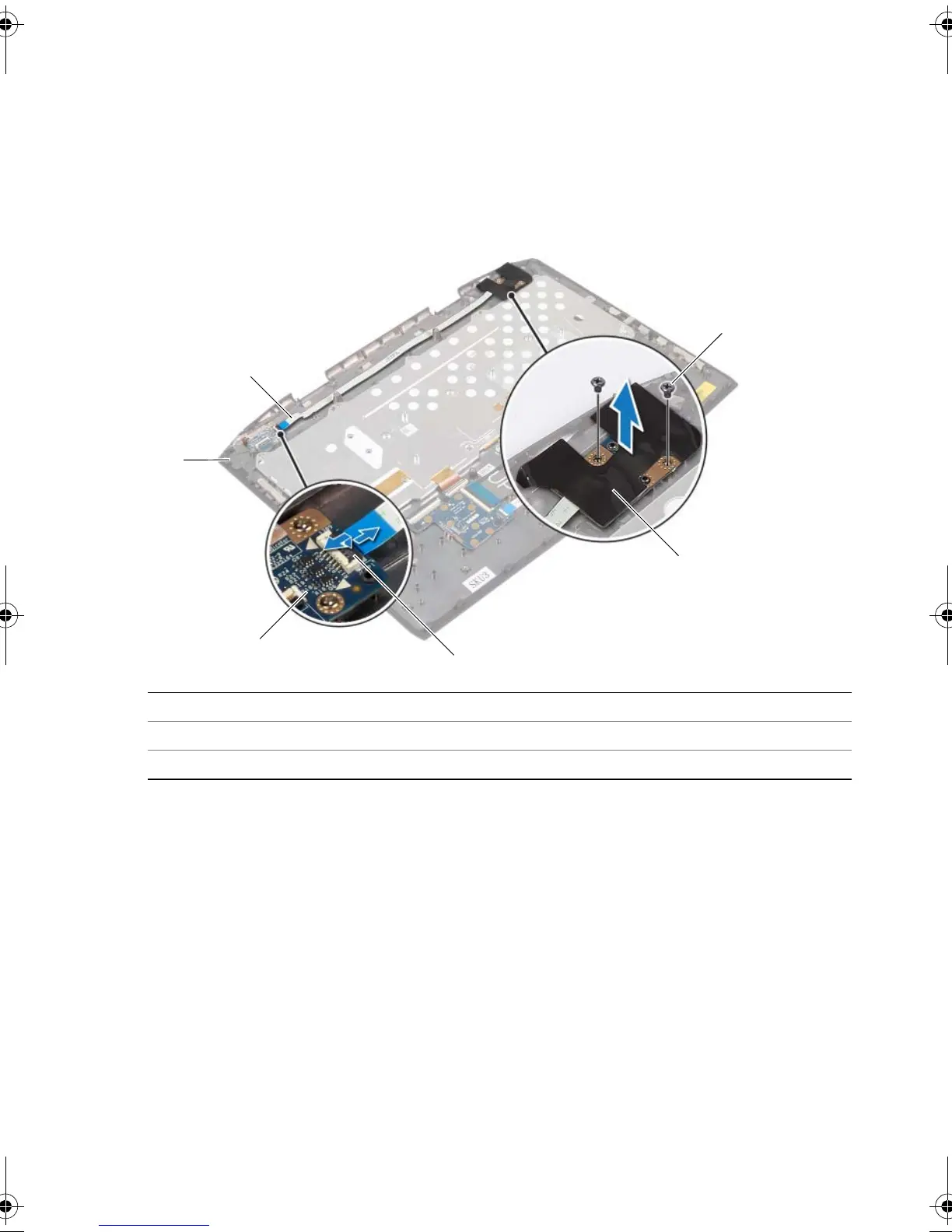3 Remove the screws that secure the power-button board to the palm-rest assembly.