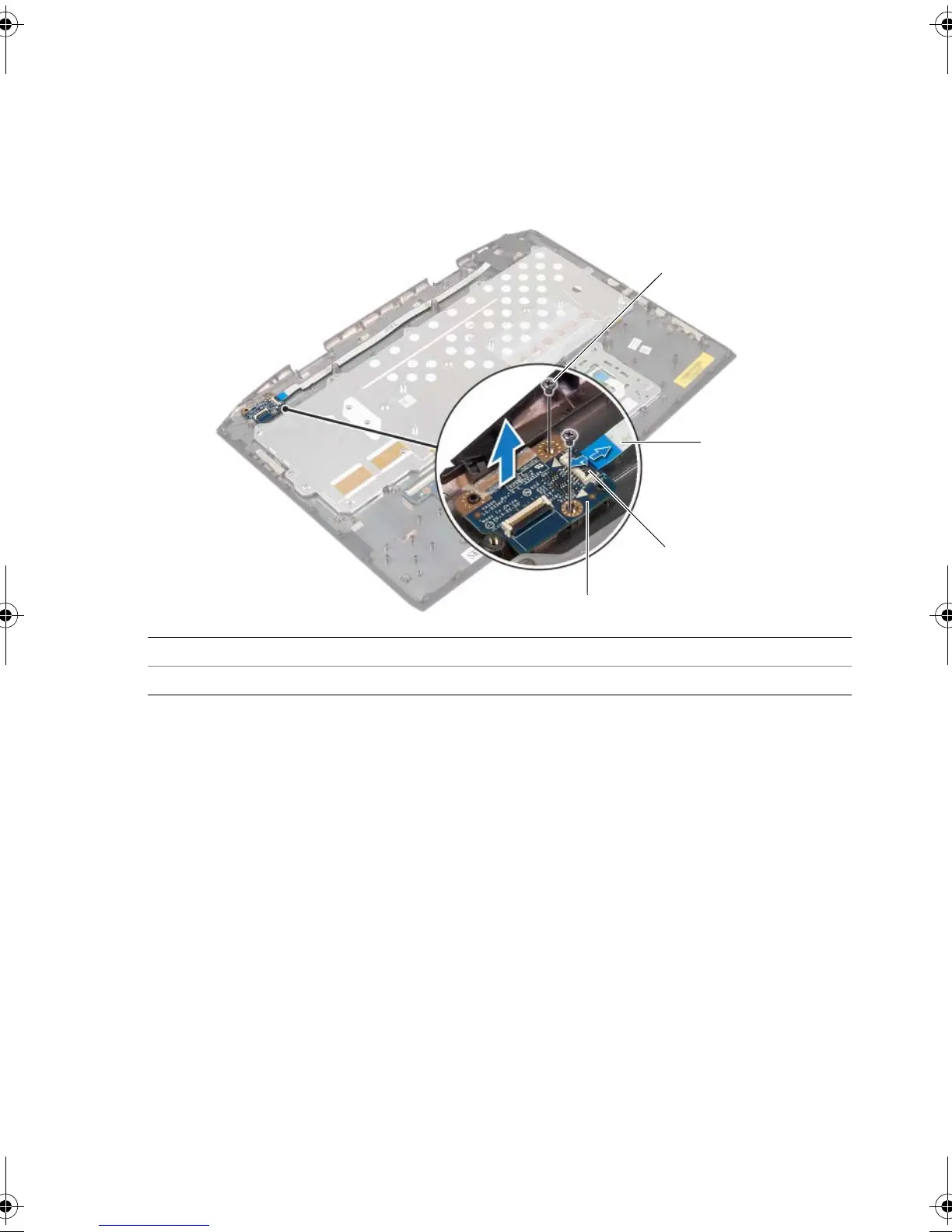 2 Remove the screws that secure the status-light board to the palm-rest assembly.