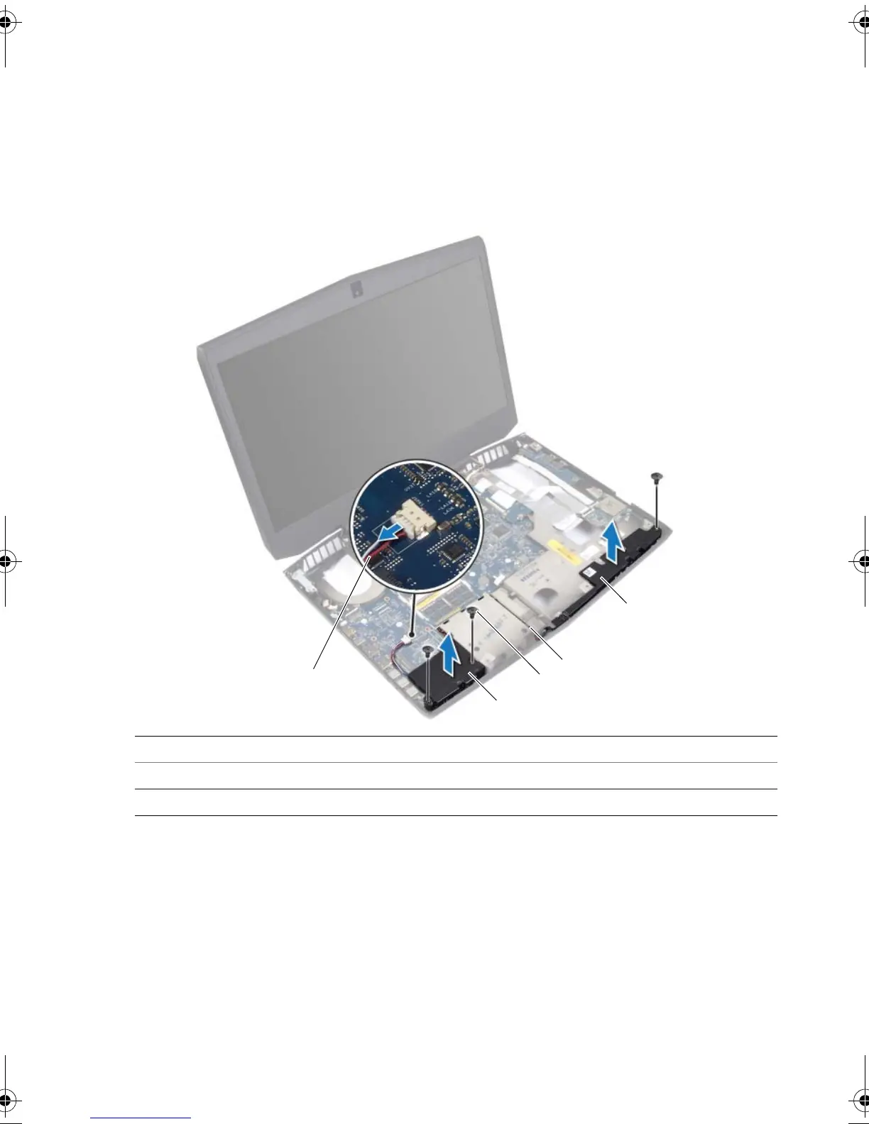 3 Lift the left speaker, note the speaker-cable routing, and remove the cable from the