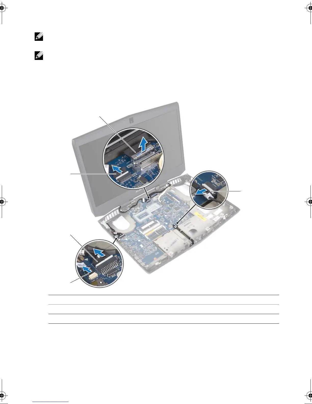 NOTE: Before disconnecting the cables from the system board, note the location of