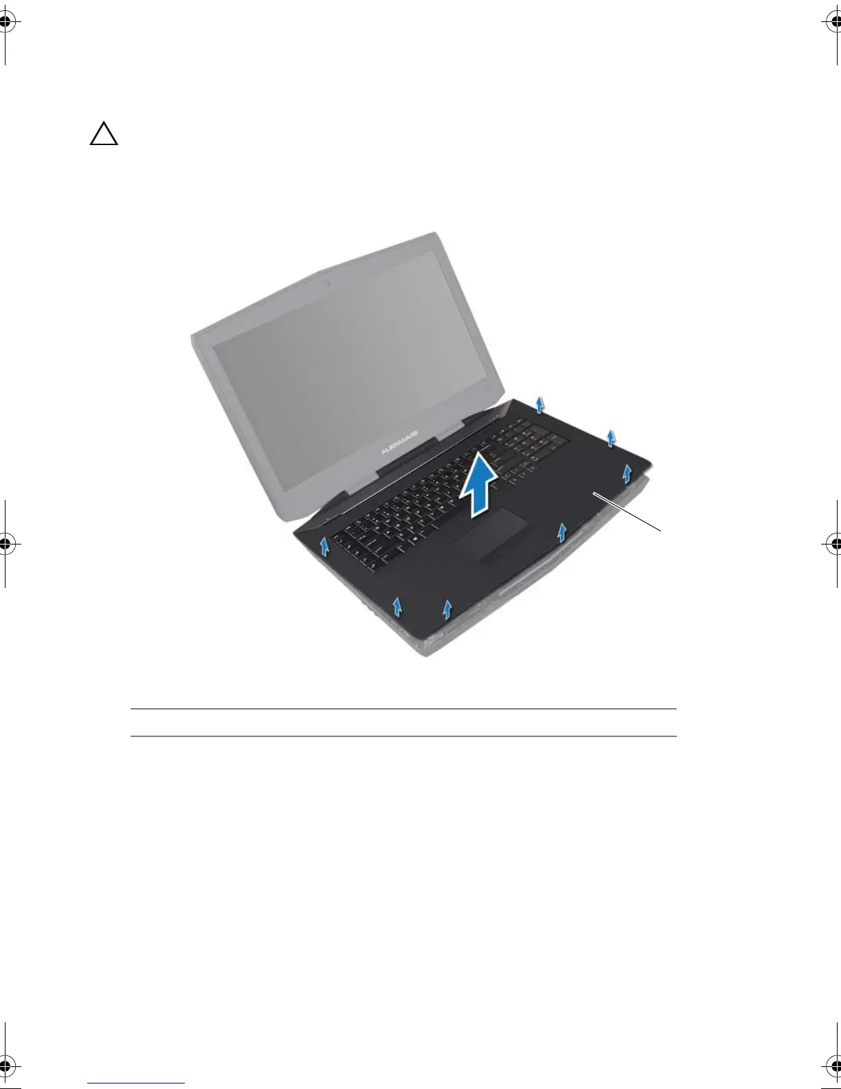 5 Carefully pry out the palm-rest assembly from the two tabs along the rear edge of the