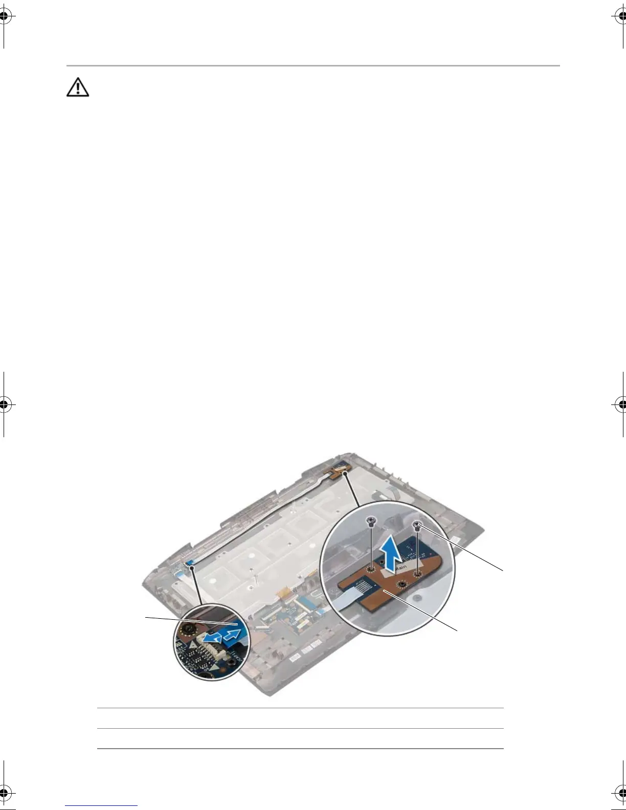 2 Remove the screws that secure the power-button board to the palm-rest assembly.