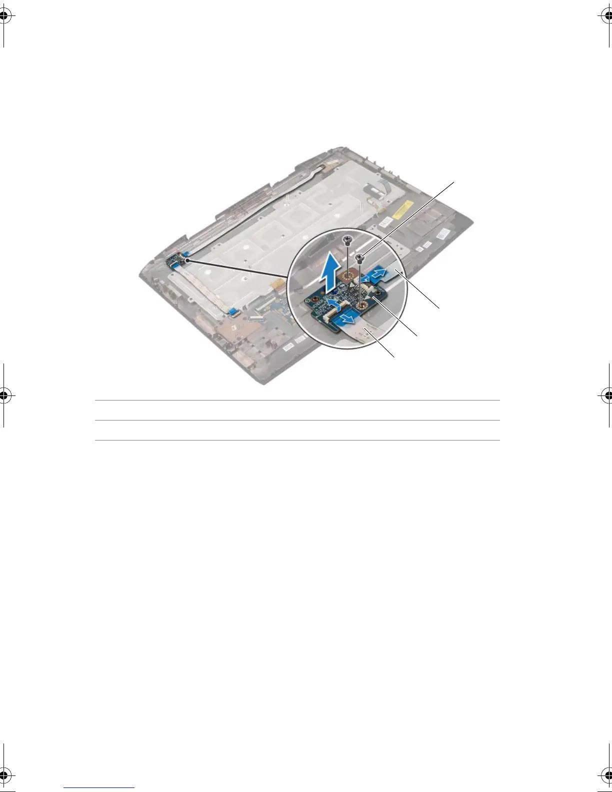 2 Remove the screws that secure the status-light board to the palm-rest assembly.