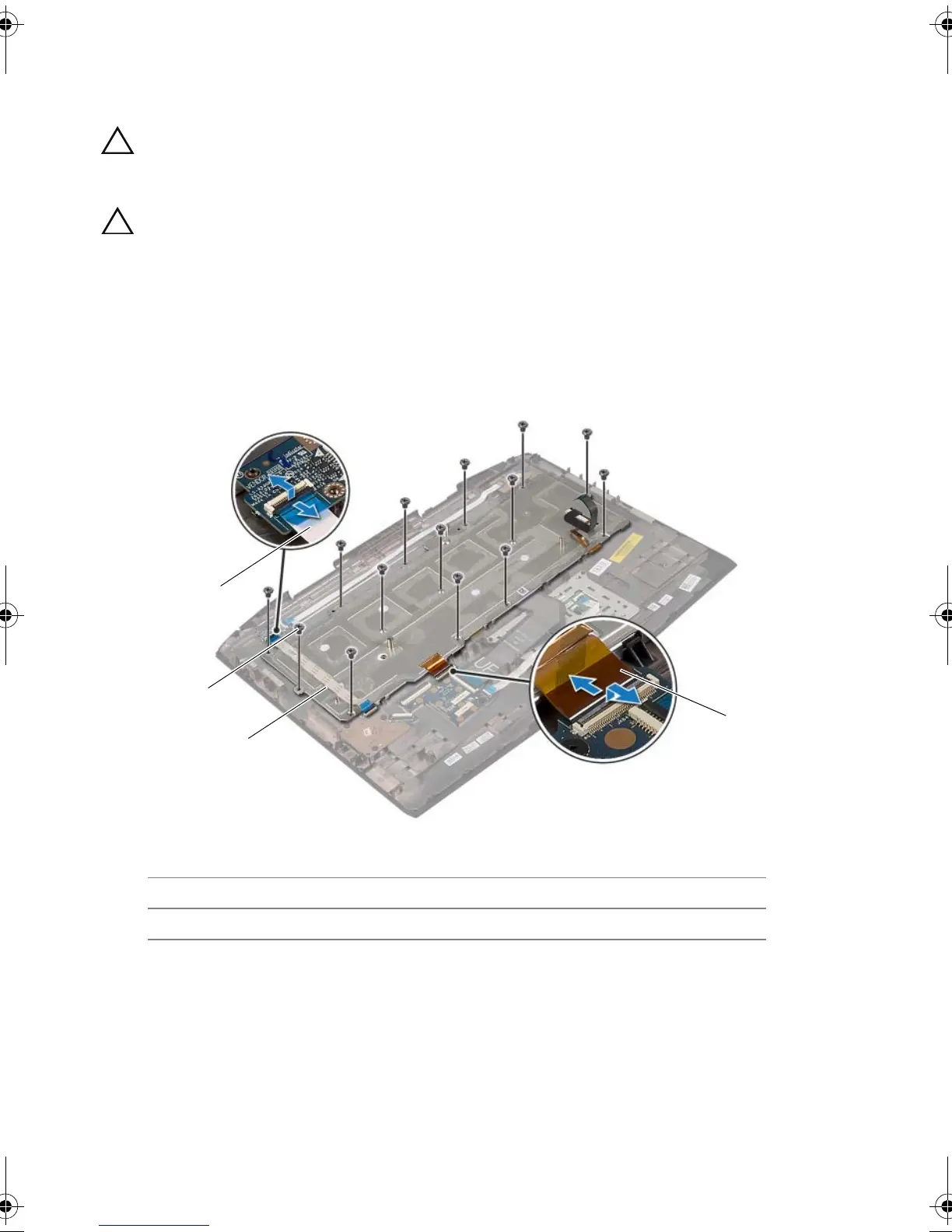 1 Remove the screws that secure the keyboard-bracket to the keyboard.