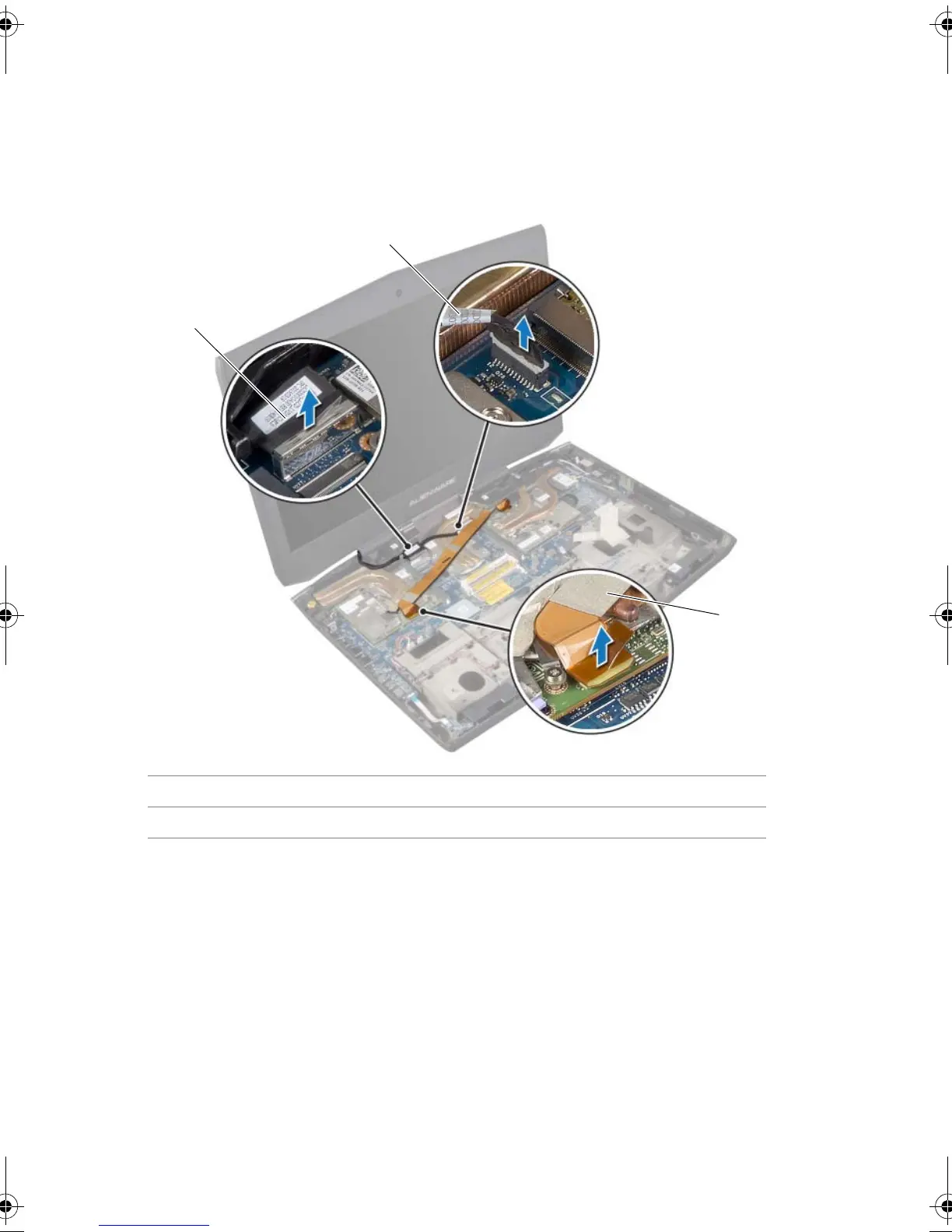 5 Pull the pull-tab to disconnect the display cable from its connector on the system