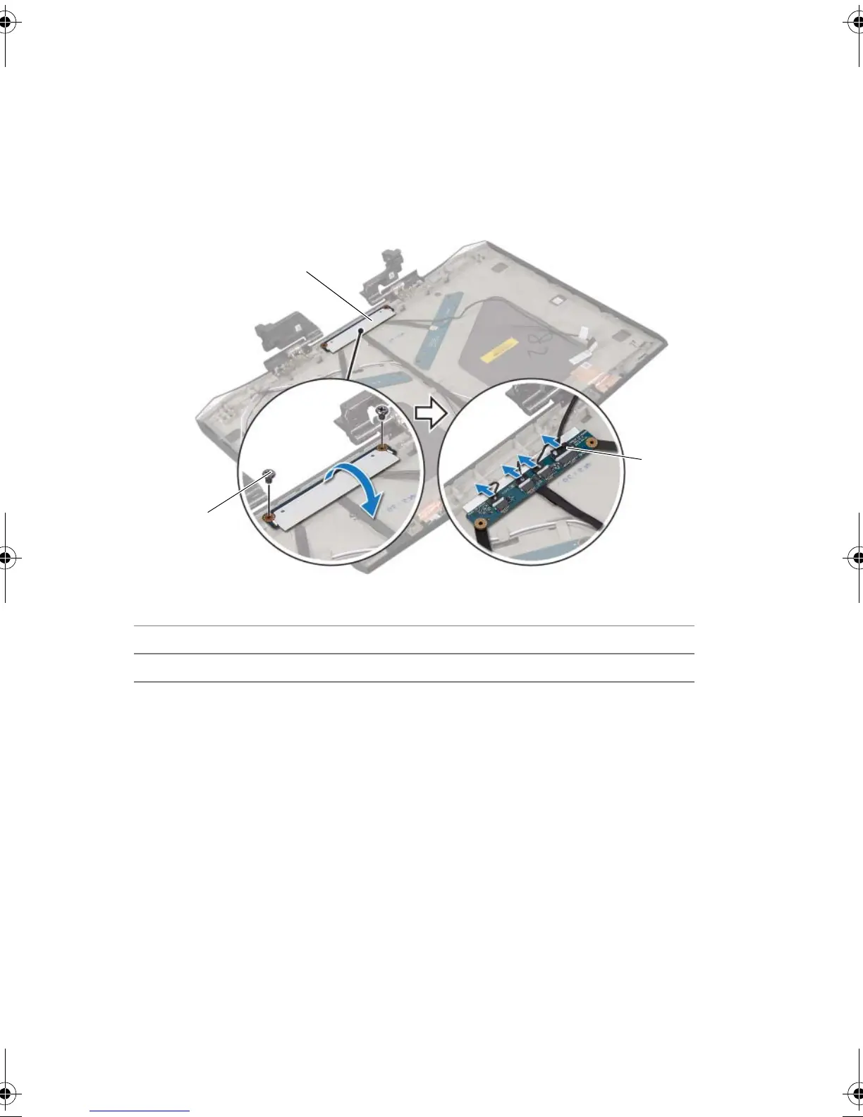 2 Carefully rotate the logo board over and disconnect the display-light board cables