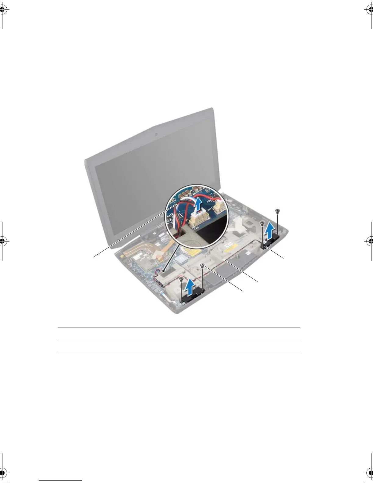 2 Note the speakers cable routing and remove the cable from the routing guides on the