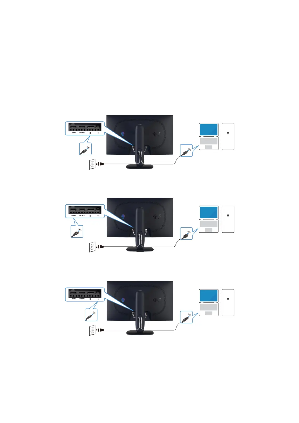 Connect the USB Type-B end of the upstream cable to the monitor and the USB Type-A end of the cable to the computer.