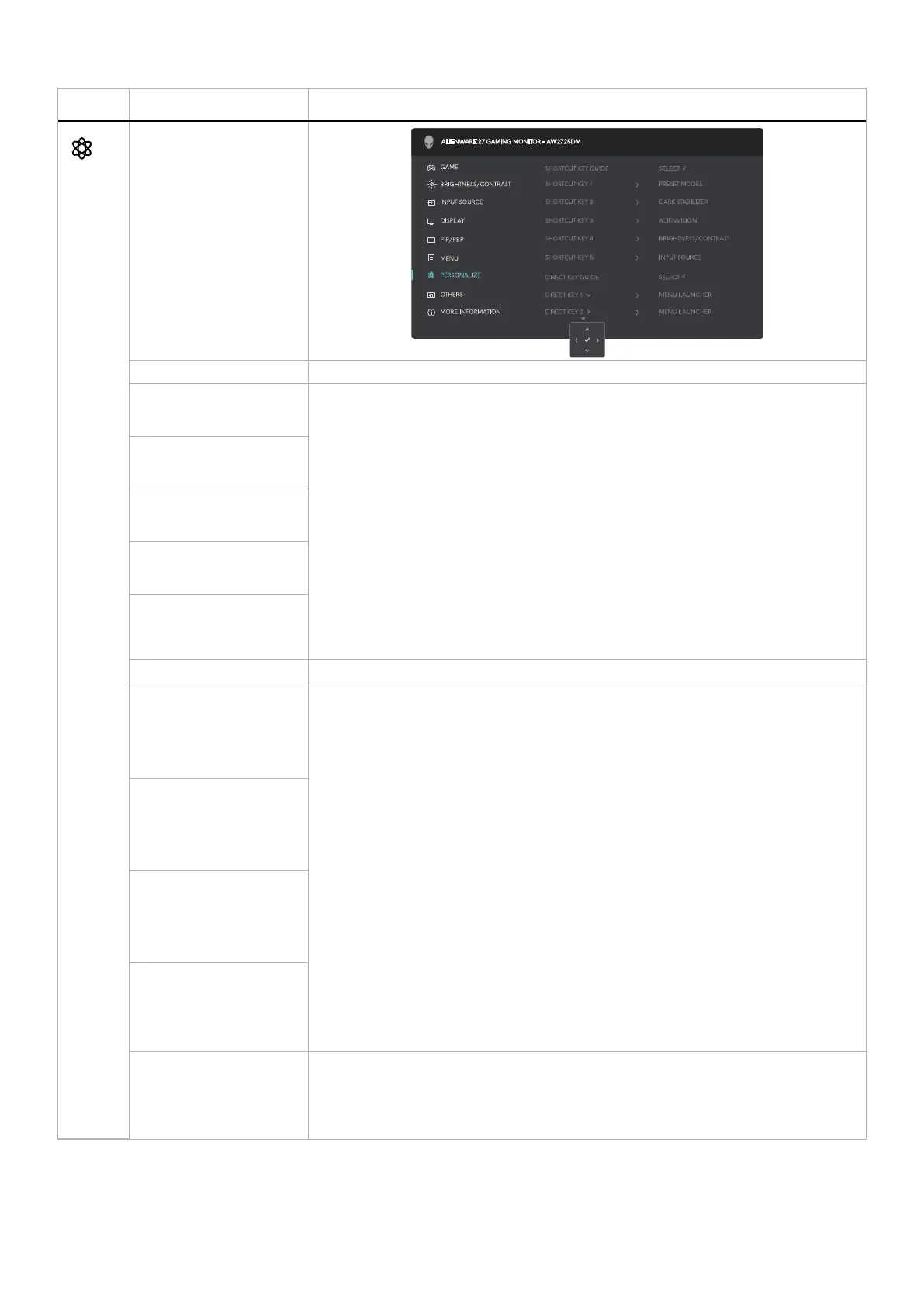 SHORTCUT KEY 1 Allows you to choose a feature from the provided list and set it as a shortcut key. Press the