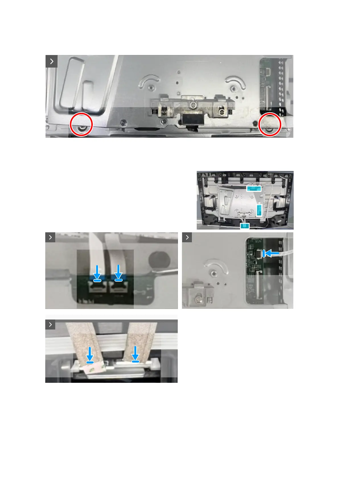 6. Adhere the tapes to secure the cables and metal shield to the display panel.