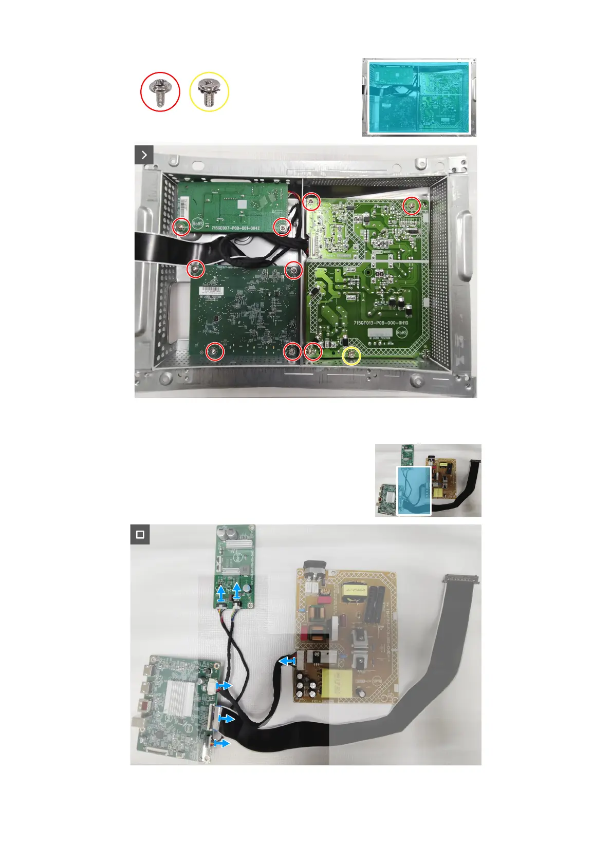 3. Disconnect the cables from the connectors on the system board, power board and converter board.