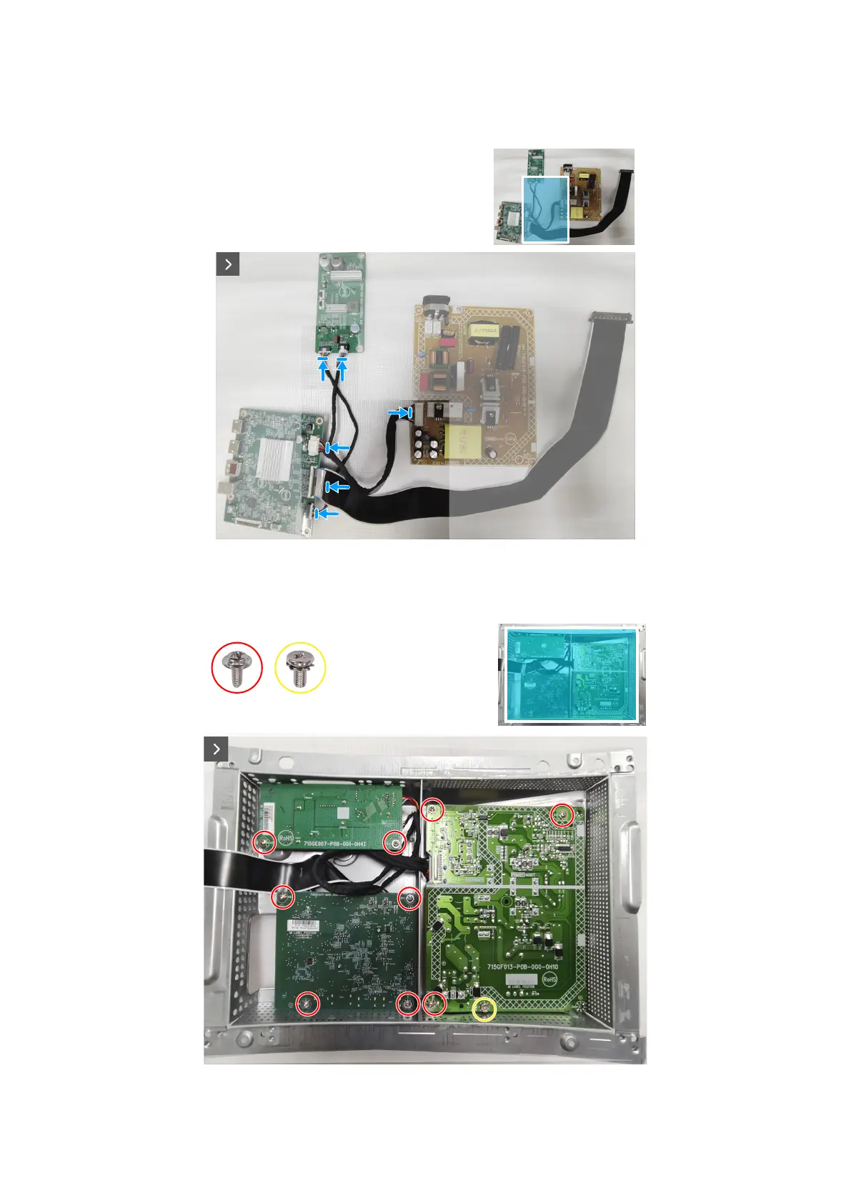 1. Connect the cables to the connectors on the system board, power board and converter board.