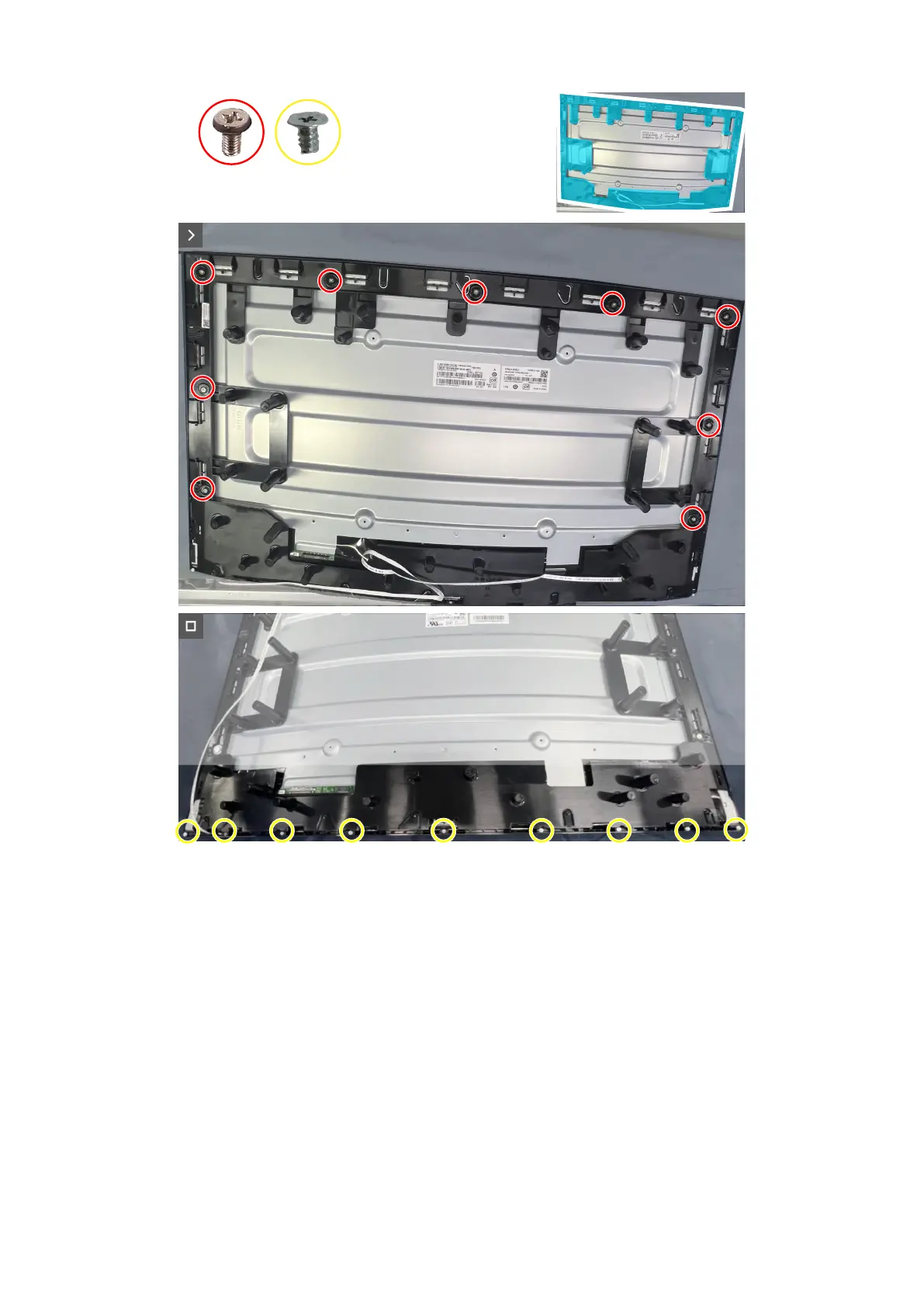 1. Replace the nine screws (M3X4) and the nine screws (Q2X3.2) to secure the middle frame to the display panel.