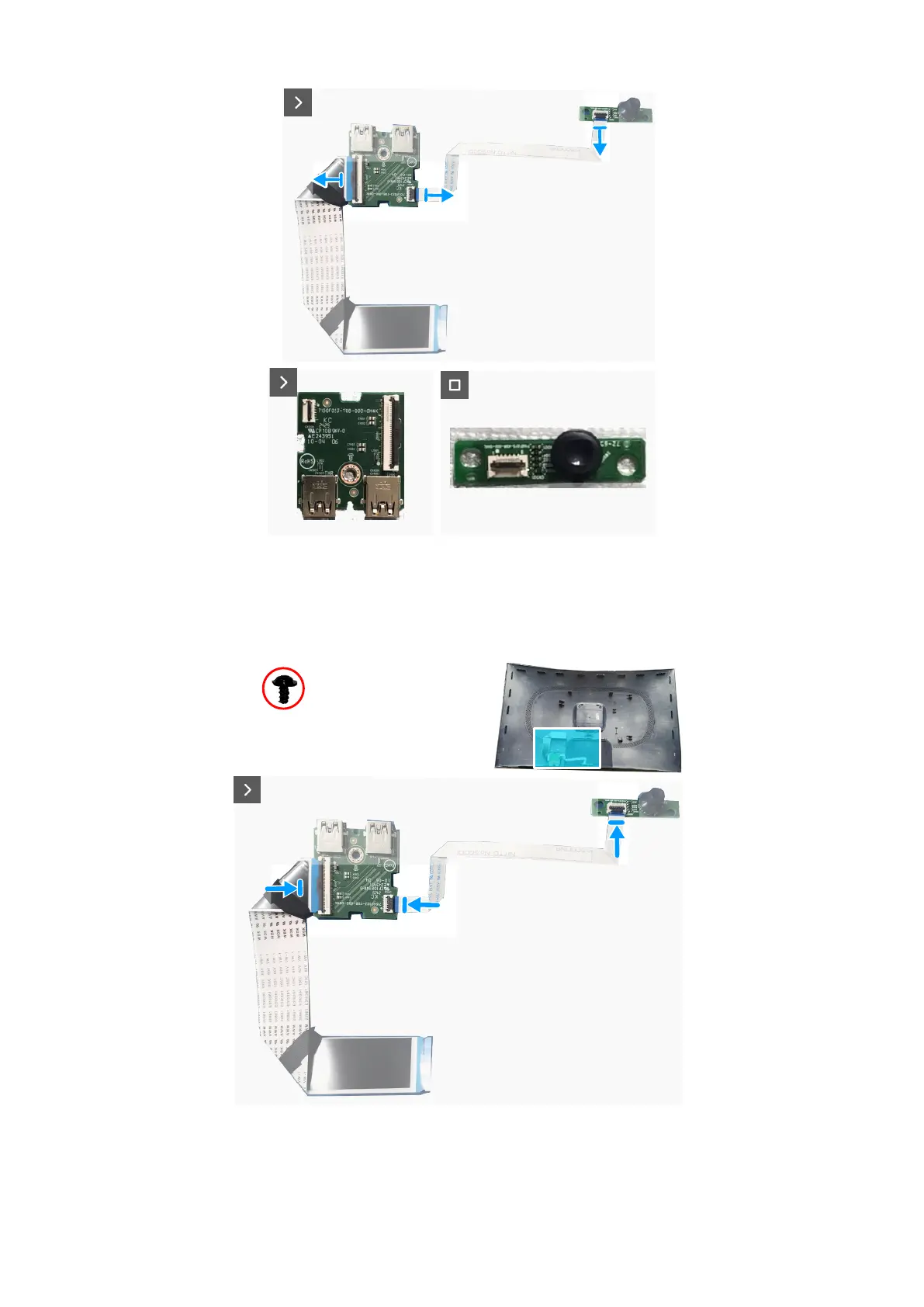 3. Replace the two screws (Q3x6) to secure the joystick-button board to the back cover.