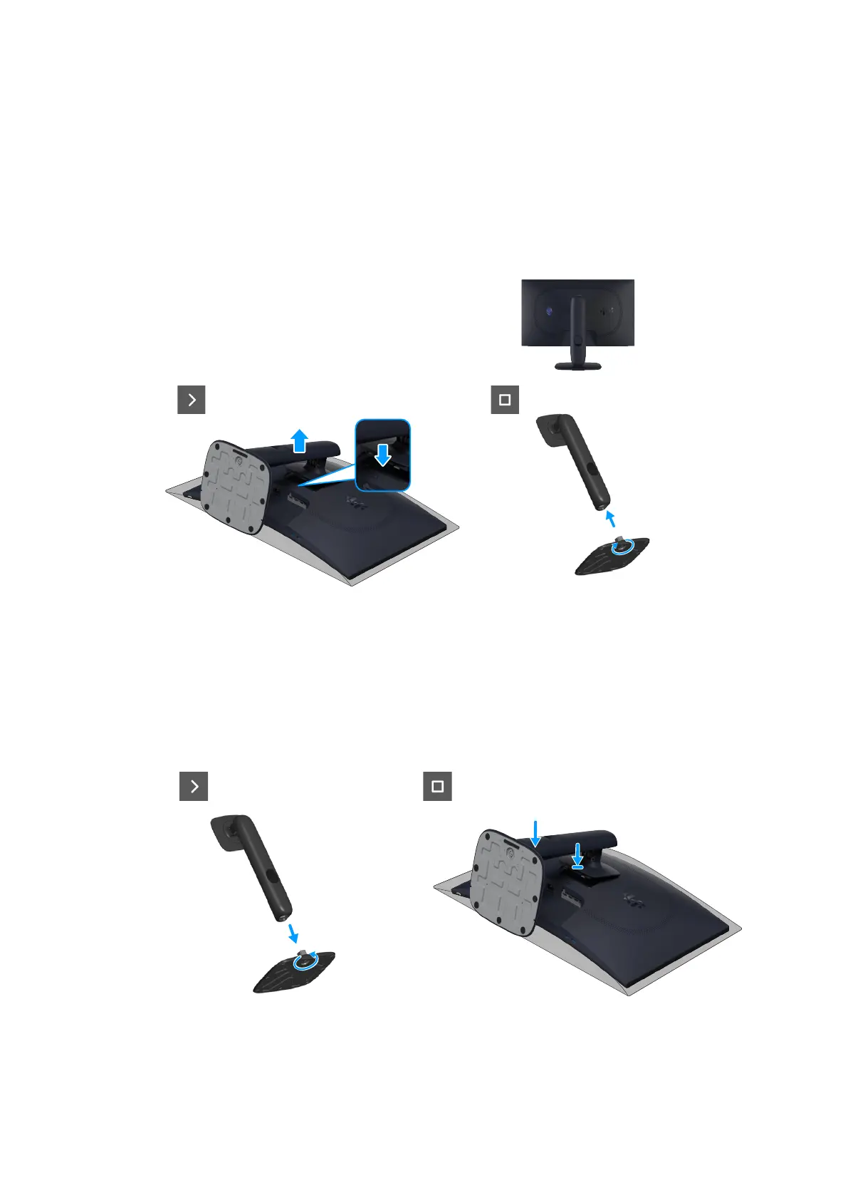 3. Align the stand-riser bracket with the grooves at the back of the monitor.