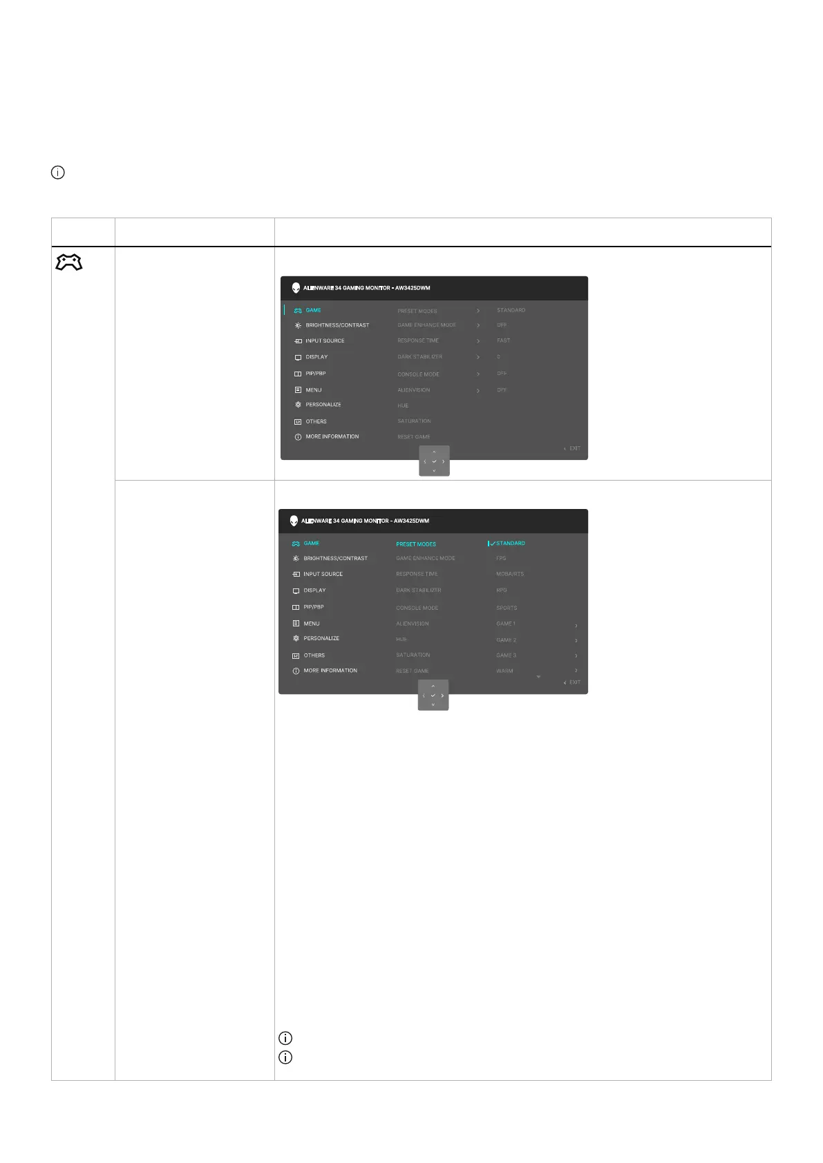 • GAME 1/GAME 2/GAME 3: Enables you to customize the settings of RESPONSE