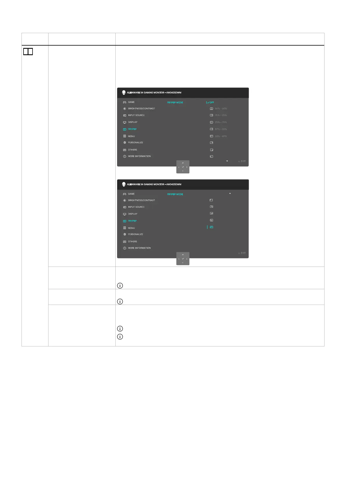 PIP/PBP MODE Allows you to choose a PBP or PIP mode from the preset list, which provides different