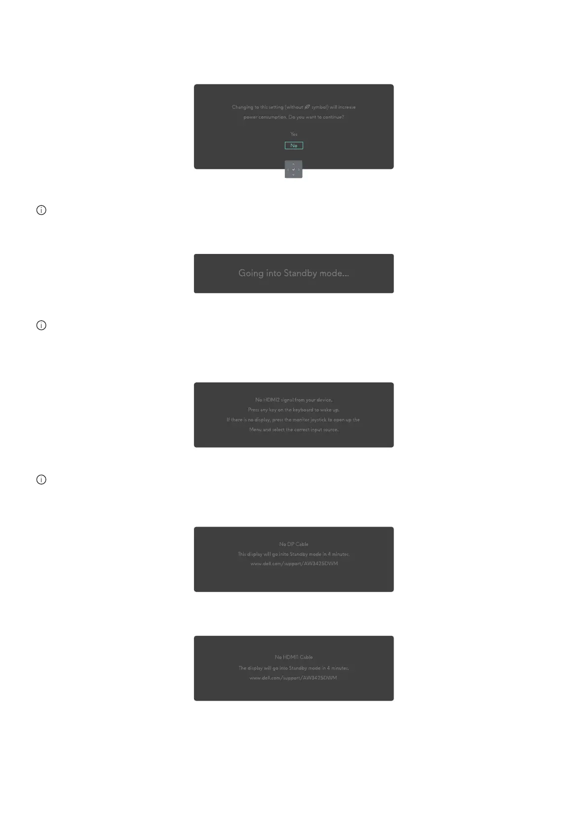 You will see the following message if DP, HDMI 1, or HDMI 2 input is selected and the corresponding cable is not connected: