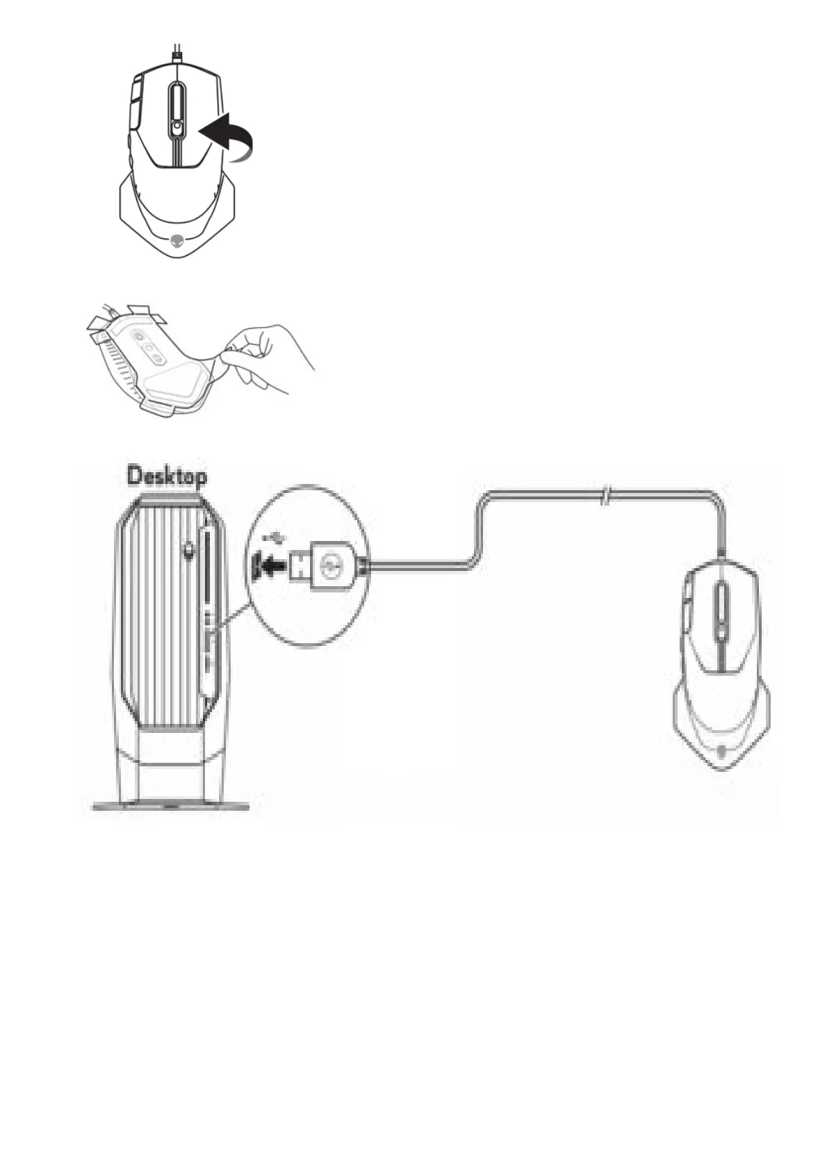 3. Connect the mouse USB cable to an available USB A port on your desktop or laptop.
