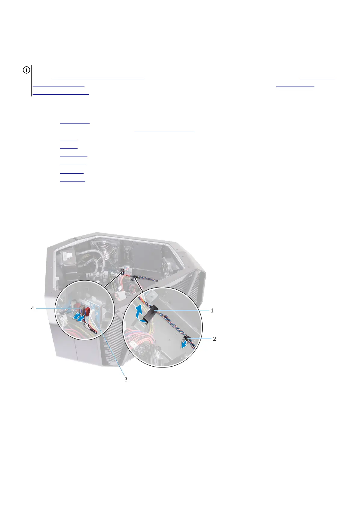 3. Remove the bottom tron-lighting cables from the routing guide on the chassis.