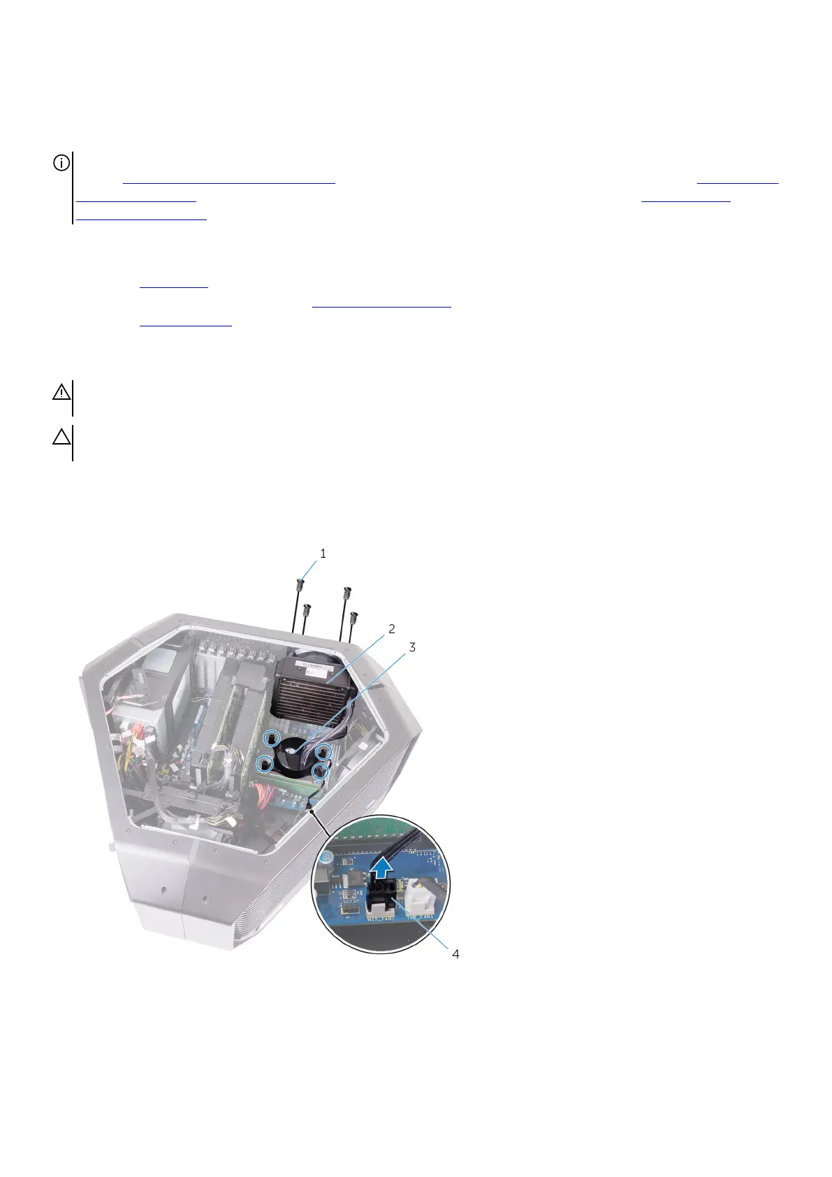screws (4) 2. processor liquid-cooling assembly fan